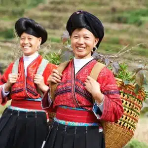 Aujourd’hui vous effectuerez une randonnée hors des sentiers battus à travers les rizières en terrasses et le vieux village de Longji. Rencontre avec les femmes Zhuang et peut être aussi Yao, célèbres pour leurs beaux costumes roses brodés, leurs lourds bijoux et leurs longs cheveux touchant parfois même le sol ! Lors de votre randonnée, en compagnie d’un accompagnateur Yao ou Zhuang, vous découvrirez plusieurs plantes sauvages utilisées dans la cuisine locale qui seront ensuite préparées et servies lors de votre déjeuner au vieux village de Longji.