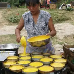 Retour au village de Xingping puis transfert ensuite en véhicule vers le village de Fuli plus en aval de la rivière (30 minutes de route). Découverte du marché local qui attire de nombreux villageois des alentours. Ce sera pour vous l’occasion de déguster et d’apprendre à préparer des friandises du Guangxi à bases de riz collant, et d’autres encas préparés dans des feuilles de bananiers (babas) (suivant la date du marché le village de Fuli peut être remplacé par un autre village où aura lieu le marché).