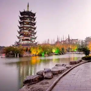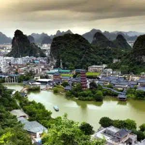 En soirée, assistez au spectacle de sons et lumières « Liu San Jie », basé sur une comédie musicale chinoise très populaire, mise en scène par le cinéaste chinois Zhang Yimou. Il se déroule sur la rivière Li dans un très beau cadre naturel entouré de montagnes karstiques. Dîner au restaurant de l’hôtel. Nuit au Secret Garden Hotel.