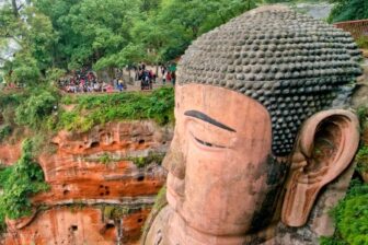 Départ ensuite vers Leshan, réputée pour sa statue du Bouddha assis d’une hauteur de 71 mètres. Elle est chargée d’apaiser les flots tumultueux des trois rivières se rejoignant face à elle. Creusé au VIIè siècle à même la falaise, un système d’évacuation des eaux à l’intérieur de la structure fut spécialement étudié, ce qui a permis la bonne conservation de la statue au cours du temps. Puis visite du temple Wuyou situé dans la forêt environnante.
