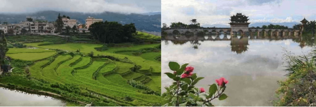 Direction la gare de Kunming Sud pour le train rapide vers Dali (déjeuner dans le train / 2h30 de trajet). Transfert vers la vieille ville de Dali, dynamique, jeune et joviale. La vieille ville abrite notamment une ancienne église catholique. Continuation vers ‘hôtel de charme Jiyisi Xiangju Art, dans un coin tranquille du village Bai de Xizhou, donnant sur la campagne, non loin du lac Erhai. Dîner.