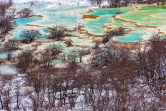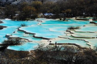 Départ en voiture pour Huanglong (2h). Découverte du parc national de Huanglong, composé d’impressionnantes formations karstiques. La calcification de la surface de terre est le paysage principal de la vallée de Huanglong, avec des milliers de pièces d’eau et bancs de calcification, comme un dragon doré s’envole des forêts. Les digues d’enclôture autour, forment les bassins différents, l’eau nivale coule le long des étages de calcification, comme les champs en terrasses, ou les écailles de poisson. Les couleurs d’eau changent selon les couleurs des sédiments dans l’eau, les arbres et les montagnes, et apparaît le jaune, le vert, le bleu clair, l’azure, etc. Montée en télécabine, puis 50 minutes de marche pour arriver au lac de cinq couleurs à 3550 mètres d’altitude. Ensuite, il faut compter 2h30 en marche normale dans une petite mais somptueuse vallée avec ses bassins calcaires en terrasse pour faire le tour et redescendre vers le bus sans télécabine afin de pouvoir admirer le paysage. Transfert vers la gare de Huanglong-Jiuzhai, départ en TGV C5768 17h59-19h52 pour Chengdu, arrivée à la gare de Chengdu Est, accueil par votre chauffeur, transfert vers l’hôtel. Nuit au Bouddha Zen Hôtel de charme.