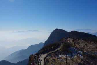 Départ en bus-navette pour aller à la station de Wanniansi (40 minutes). Visite du temple Wannian (montée en télécabine, altitude 1100 m). Construit au 4ème siècle, le temple Wannian a été brûlé plusieurs fois dans l’histoire. À l’intérieur d’un bâtiment de style d’architecture indienne, est abritée une statue en bronze de bodhisattva Puxian réalisée en 980, et qui incarne le protecteur de la montagne. En redescendant à pied le long du chemin de montagne (2.5 heures), vous visiterez de nombreux sanctuaires en route. Visite du temple Baoguo, édifié en 1573 sous les Ming et reconstruit sous les Qing, Les bâtiments principaux du temple sont adossés au flanc de la montagne. Nuit à l’Holiday Inn Express Emei Moutain.