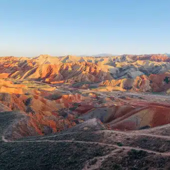 Visite du Horse Roof Temple et du bouddha géant dans la matinée. Visite ensuite des formations rocheuses colorées de Zhangye Danxia. Elles sont le résultat du dépôt de couches de sédiments de couleurs différentes pendant 24 millions d’années entre deux plaques tectoniques qui, avec l’aide de l’érosion, ont créé ces paysages bariolés. Vue sur les paysages féeriques. Route pour Jiayuguan (environs 2h45 de route) et installation à l’hôtel. Logement au Jiugang Hotel.