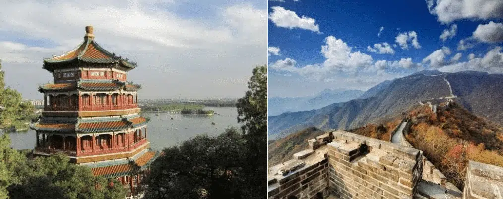 Départ pour la Grande Muraille à Mutianyu : construite sur 6700 km de long pour protéger l’Empire du Milieu des invasions des Barbares du Nord, inscrite au Patrimoine Mondial de l’Humanité. Montée prévue en télécabine, descente à pied (possibilité de redescendre en toboggan, à payer sur place). Déjeuner, puis de retour à Pékin, visite du palais d’été, et balade dans le grand parc en longeant le grand lac Kunming. Dîner de canard laqué, spécialité de Pékin. Nuit à l’hôtel SSAW