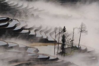 Départ à 8 heures de votre hôtel pour une longue journée de route en direction de Yuanyang, par l’autoroute du Sud. Arrêt à mi-chemin à Mojiang, visite du parc du Tropique du Cancer et déjeuner libre. Continuation de la route vers Yuanyang et arrivée en fin d’après-midi, premiers points de vue sur les rizzières en terrasse avec le soleil couchant. Installation à la 12 Manor Terraces située en face des rizières. Dîner libre