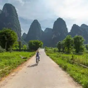 Journée en autonomie à Yangshuo. Vous pourrez par exemple effectuer une balade à vélo ou en scooter électrique en campagne dans la vallée de la rivière Yulong (sur du plat) et/ou réserver l’une des nombreuses activités de plein air proposées sur place (voir encadré ci-dessous). Nuit à Yangshuo.