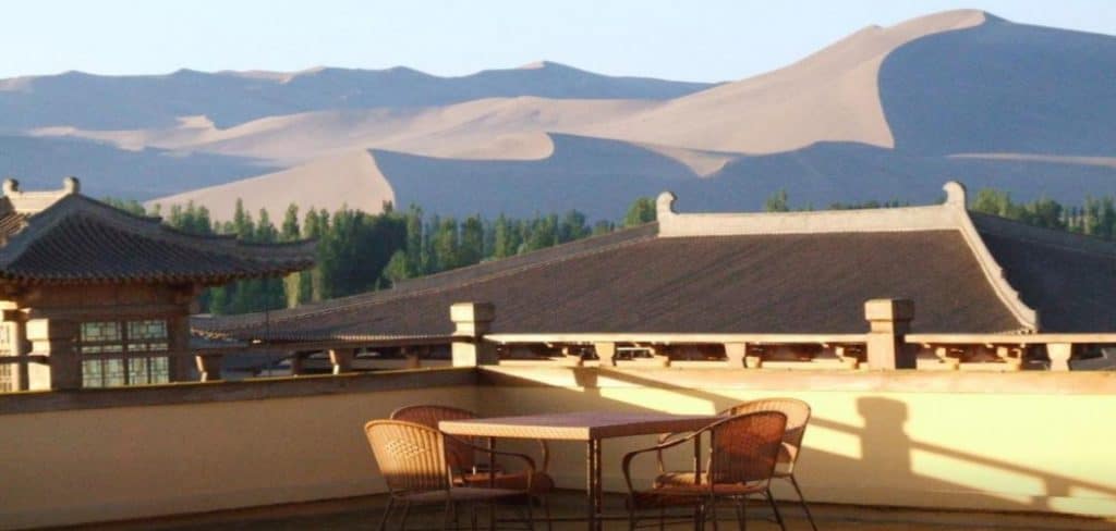 Sans aucun doute l’un des plus beaux hôtels de la ville voire même de la province, le Dunhuang Silk Road Hotel est un hôtel de charme de style caravansérail à la lisière du désert. Cet établissement haut de gamme est un lieu unique de votre itinéraire sur la Route de la Soie chinoise et mérite d’accorder un écart à son budget pour s’offrir cette expérience.Entièrement décoré sur le thème du désert et des Routes de la Soie, le style architectural de l’hôtel est inspiré directement de la dynastie Tang. De même que la cour, les longs corridors et le mobilier des chambres vous transportent vers le passé. Les chambres sont toutes équipées de la climatisation. L’établissement propose des chambres standard et une aile composée de villas pour ceux qui souhaitent pousser l’indulgence plus loin.Deux restaurants préparent respectivement cuisine chinoise et cuisine internationale. L’arrière de l’hôtel donne directement sur l’oasis menant aux dunes et permet des promenades pour admirer la lumière du soir . Nous pouvons y organiser sur demande des activités uniques telles qu’une soirée barbecue sous les étoiles ou un petit-déjeuner au lever du soleil sur les dunes.Sur la terrasse, vous pourrez goûter aux délices préparés par le chef. Si vous devez faire une escale « luxe » lors de votre séjour, c’est bien au Dunhuang Silk Road Hotel. Le confort et l’accueil reçus valent vraiment la peine de faire monter un peu votre budget hébergement.L’hôtel est doté de WIFI. Un système de navettes reliant le centre à l’aéroport a été mis en place.
