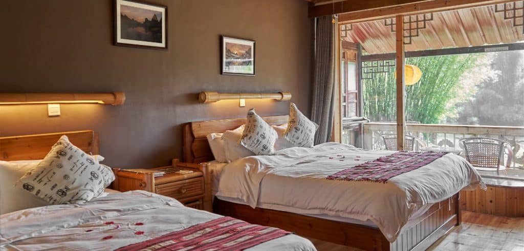 L'un des plus beaux cadres de la région sur le bord de la Rivière Yulong, inoubliable (choisir les chambres à l'avant). Très bon service et prestations de qualité. Souvent complet.