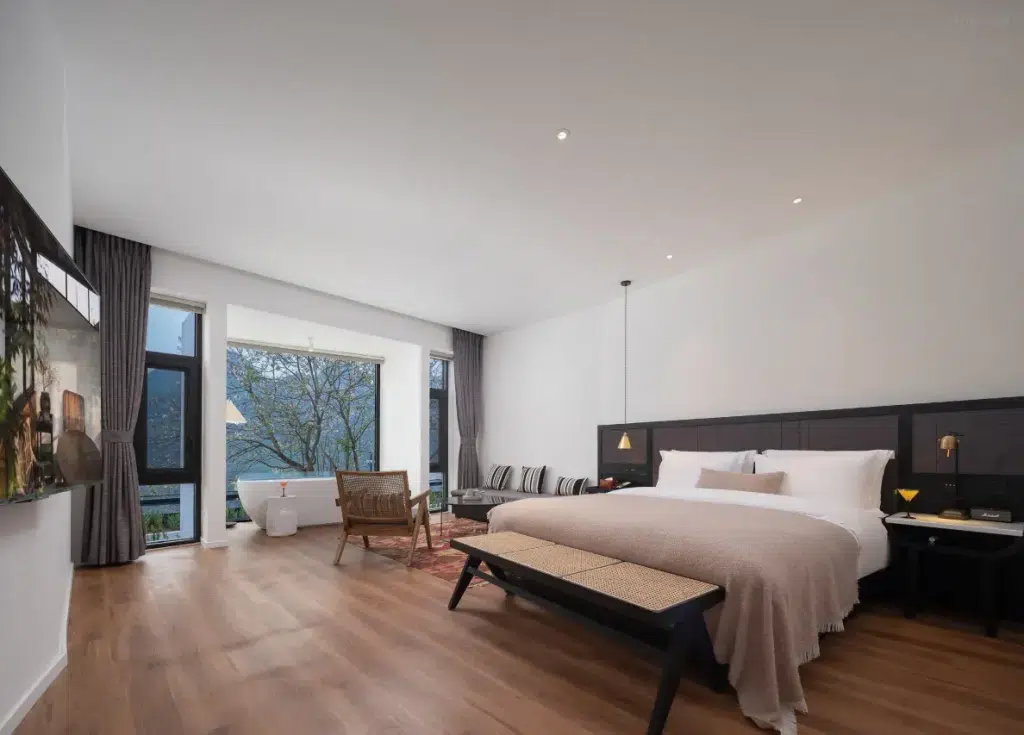 L’établissement dispose d’une piscine extérieure, d’un spa relaxant, et d’un restaurant servant des spécialités locales et internationales. Chaque matin, un petit-déjeuner gourmand et varié est proposé, idéal pour bien commencer la journée.