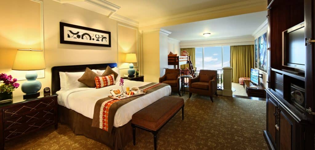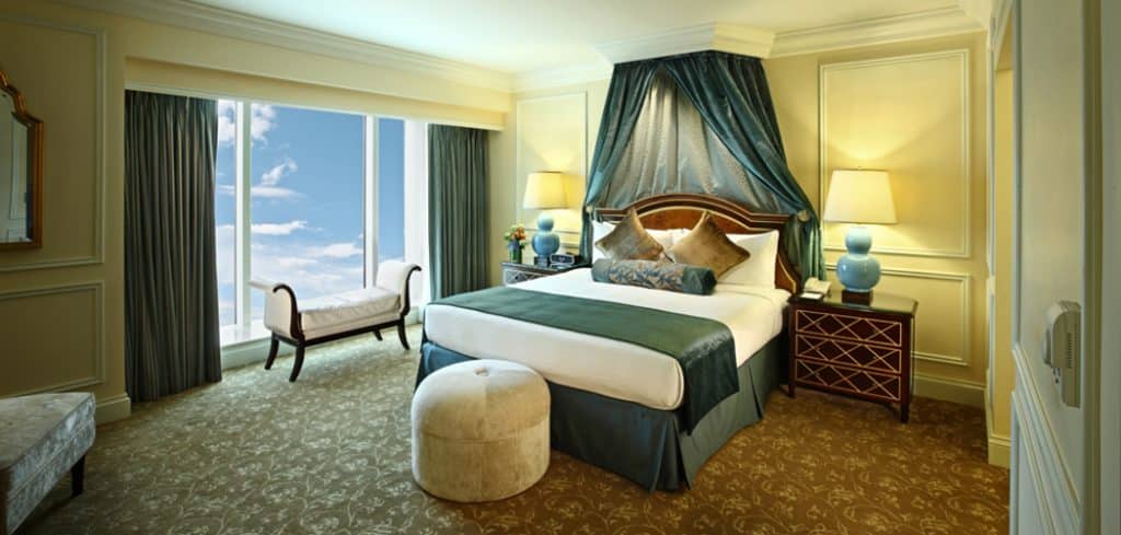 Suites de luxe, boutiques, piscines immenses, attractions en tout genre… Démesure et gigantisme sont les deux mots pour définir le Venetian Macao Hotel. A l’intérieur de l’hôtel, une partie de Venise a été reconstituée et vous pouvez même faire une balade en gondole.Les 3 000 suites du Venetian Macao offrent un espace rarement vu ailleurs. Vous pourrez organiser votre périple dans le coin avant de vous relaxer au salon et choisir entre baignoire ou douche dans une salle de bain toute en marbre.Il faudrait presque une boussole pour circuler à l’intérieur de ce palace. Prévoyez plusieurs jours pour avoir le temps de tout découvrir. Un service de navettes gratuites vous permet de rejoindre l’hôtel depuis l’aéroport ou le port.