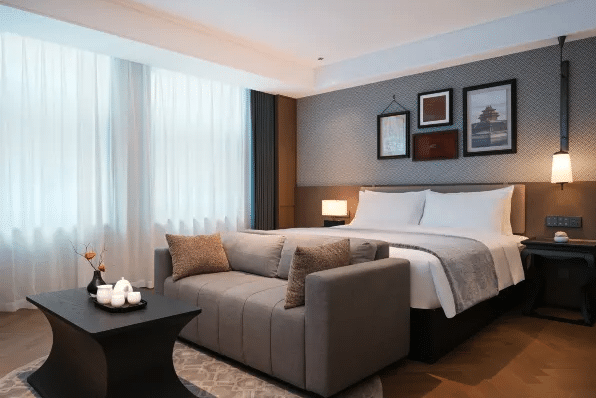 Blossom House Tiananmen incarne la vision raffinée de Huajuntang, une marque prestigieuse du groupe Huazhu. Cet hôtel 4 diamants, ouvert en 2025, se dresse dans le cœur battant du centre politique et culturel de Pékin, sur l’axe central historique de la ville. Avec une note exceptionnelle de 9,7/10 basée sur 919 avis vérifiés (99% d’avis positifs), cet établissement redéfinit le concept de l’hôtellerie historique chinoise. Le Blossom House propose 71 chambres somptueuses imbriquées dans une authentique demeure historique pékingoise. Contrairement aux hôtels standards, ce lieu incarne le concept « Grande Seclusion dans le Palais » : une résidence « cachée dans la cité impériale » permettant aux voyageurs de vivre « les loisirs des empereurs » plutôt que des services hôteliers standardisés. Situé au cœur du patrimoine Ming-Qing, l’hôtel cohabite avec 16 marques centenaires telles que Liubiju et Neiliansheng, formant un unique modèle commercial fusionnant « tradition séculaire » et « mode internationale contemporaine » (Ruifuxiang est voisin de H&M). Le design incarne les esthétiques secrètes des jardins impériaux avec une approche de « résidence contemporaine de lettré » qui démystifie la Cité Interdite et la rend accessible au-delà du simple tourisme photographique.