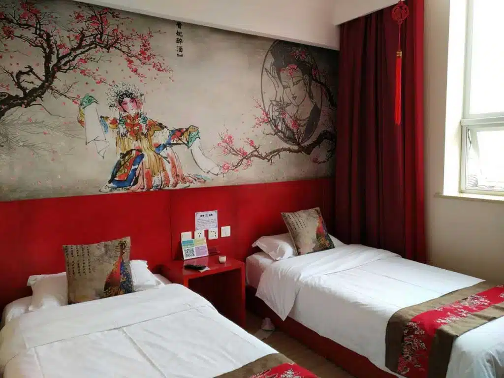 Le Happy Dragon Alley Hotel Beijing bénéficie d’un emplacement idéal, dans une petite rue calme, au cœur de Pékin. Situé à seulement 3 min à pied de la station de métro Zhangzizhonglu, l’établissement est tout proche de la ruelle Nanluoguxiang, réputée comme étant l’une des plus vieilles hutongs de la ville.L’hôtel, récemment rénové, dispose d’une réception ouverte 24h/24, d’une bagagerie ainsi que d’une connexion Wi-Fi gratuite. Le bureau d’excursions de l’établissement pourra vous aider à organiser vos déplacements. Un service de location de vélos et de voitures est également assuré pour vous permettre de partir à la découverte de la ville.Les 50 chambres de l’établissement sont équipées de tout le nécessaire afin de vous assurer un agréable séjour. Chacune des chambres est dotée d’une décoration différente, sur des thèmes culturels chinois.Le restaurant de l’hôtel prépare des spécialités chinoises et occidentales. Vous dégusterez un petit-déjeuner occidental et pourrez aussi manger des nouilles italiennes ou encore des pizzas. Le bar sert également un grand choix de boissons.