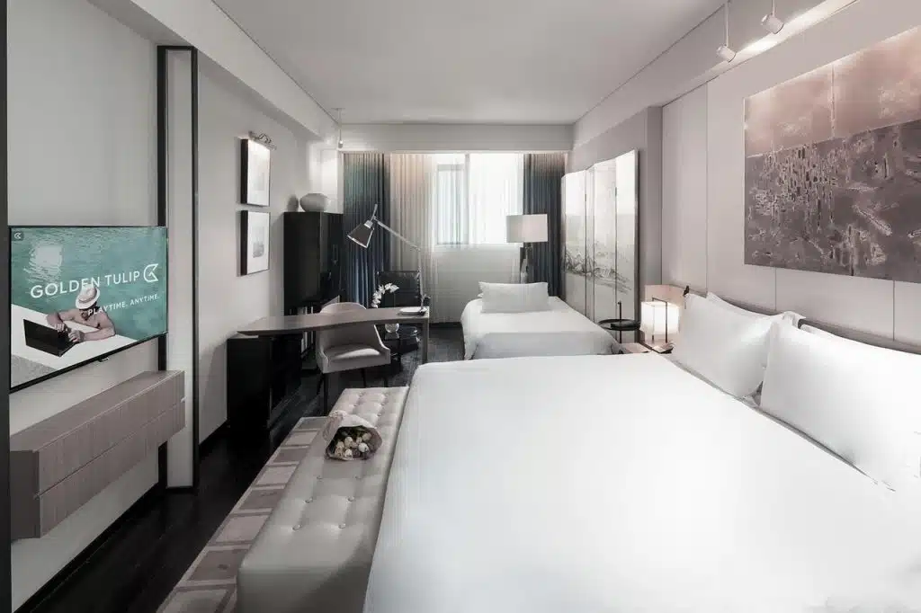 Basé au cœur de Shanghai, à seulement 15 minutes de marche du Bund, l’hôtel Golden Tulip fut l’un des plus grands hôtels de l’Extrême-Orient à sa construction en 1934. Il a également été un point de repère du centre-ville de Shanghai au cours des 80 dernières années.L’établissement construit sur 9 étages compte 266 chambres modernes, qui répondent aux besoins des clients.La mission de l’hôtel est de réinventer le séjour de ses clients en leur offrant une expérience unique et ludique dans un cadre idyllique.Cet hôtel prestigieux, autrefois célèbre pour son petit-déjeuner cantonais, l’est encore aujourd’hui pour ses célèbres petits pains Xin Ya qu’il propose tous les jours et que tous les touristes qui se rendent à Shanghai se doivent de goûter.L’hôtel dispose également d’un salon de travail commun, d’une salle de banquet de 300 m2 pour les réunions ou événements d’entreprise, qui peut être divisée en trois salles de réunion et une salle de conférence de 15 personnes.