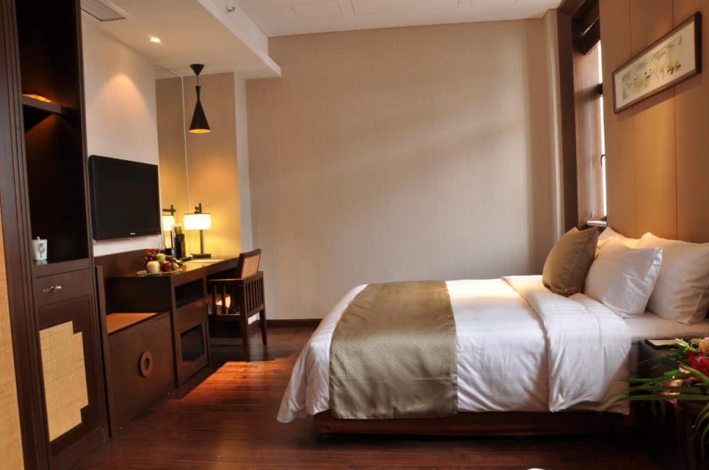 Le Scholars Pingjiangfu Hotel est situé au cœur de la vielle ville et est le point de départ idéal pour visiter de nombreuses attractions touristiques de Suzhou.L’hôtel se compose de plusieurs bâtiments et de magnifiques petites cour intérieures. Les chambres sont un agréable mélange de tradition et de modernité, elles offrent tout le confort nécessaire. Elles sont toutes climatisées et vous y trouverez une télévision, du matériel de repassage, un minibar…Les familles aimeront l’originalité des 2 chambres familiales avec un coin Hello Kitty pour l’une et un coin Doraemon pour l’autre.Pour vous détendre, en plus d’une piscine, vous trouverez aussi une salle d’échecs, un spa, une salle de fitness et vous pourrez profiter d’un agréable massage du corps ou des pieds.Le restaurant de l’hôtel vous servira des plats chinois comme des plats occidentaux et 2 deux bars seront à votre disposition.Il faudra 10 minutes en voiture depuis la gare centrale de Suzhou et 20 minutes depuis la gare Nord de Suzhou pour rejoindre le Scholars Pingjiangfu Hotel.