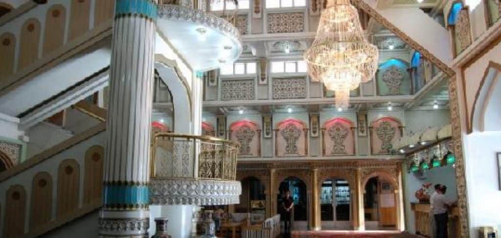 Le Turfan Hotel est un 3 étoiles qui convient aussi bien aux voyages touristiques qu’aux voyages d’affaires. Situé à 300 m de la place principale, l’hôtel est l’un des plus populaires de la ville-oasis de Turpan et peut-être même de toute la région de Xinjiang.Hôtel décoré de style Ouighour avec des fresques en stucs colorées et un mobilier oriental. Les chambres de confort standard ont déjà vu passer de nombreux voyageurs. Elles sont simples mais on retiendra surtout le côté folklorique, spacieux et confortable des lieux. L’équipement est complet avec télévision, accès à Internet, coin bureau et baignoire dans la salle de bain. A noter qu’un service en chambre est disponible 24h/24.Après une journée bien remplie à Turpan, les clients auront l’opportunité de se relaxer au sauna ou de faire du sport dans la salle de fitness. En soirée, le casino et le café vous ouvrent leur porte. Attention, il ne s’agit en aucun cas d’une adresse luxe ou confort, mais d’une option pas trop chère et historique à Turpan. Il est possible de prendre le petit-déjeuner ou juste de se rafraîchir sous les vignes dans le café qui se trouve dans l’arrière cour.