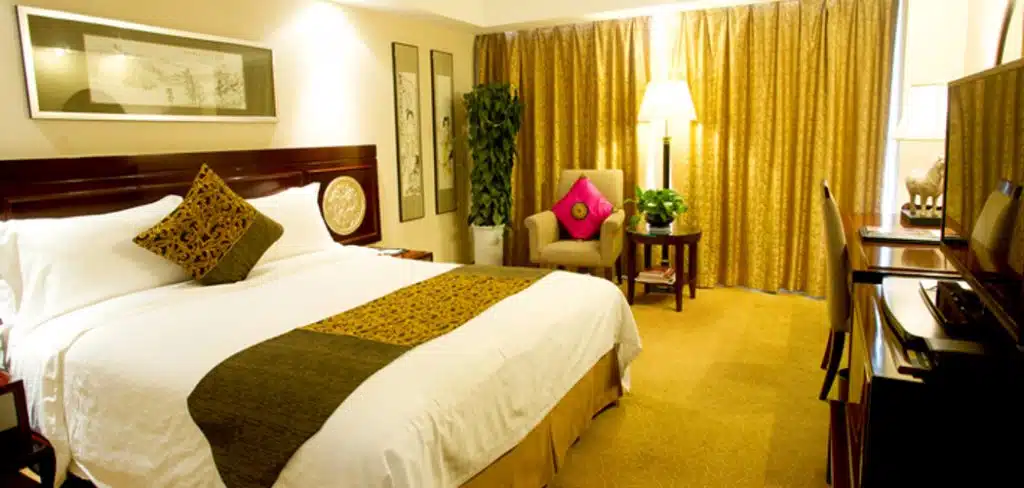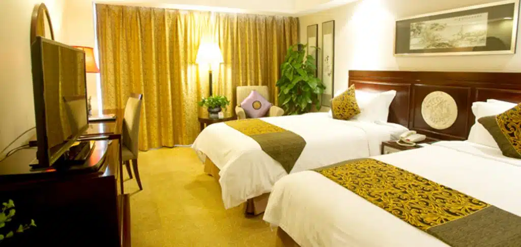 A Xi’an, le Grand New World a été bâti au sein même des remparts qui entourent la vieille ville. Son emplacement est donc idéal pour organiser des journées de visites. Les voyageurs et familles ne sont qu’à quelques minutes des principaux sites d’intérêt touristique.On pourrait presque dire que l’hôtel Grand New World Hotel de Xi’an est un site d’intérêt à lui tout seul. Il abrite en effet dans son lobby un immense mur de béton sculpté. Impressionnant ! L’hôtel est par ailleurs équipé d’une piscine couverte géante dont le cadre est on ne peut plus agréable, idéal pour les familles voyageant à Xi’an, et souhaitent quelques moments de repos ou de loisir avec leurs enfants.Les chambres, peintes dans des tons clairs et meublées en bois, proposent une décoration typique chinoise tout en restant très modernes. Les familles pourront loger ensemble dans les chambres communicantes ou familiales.
