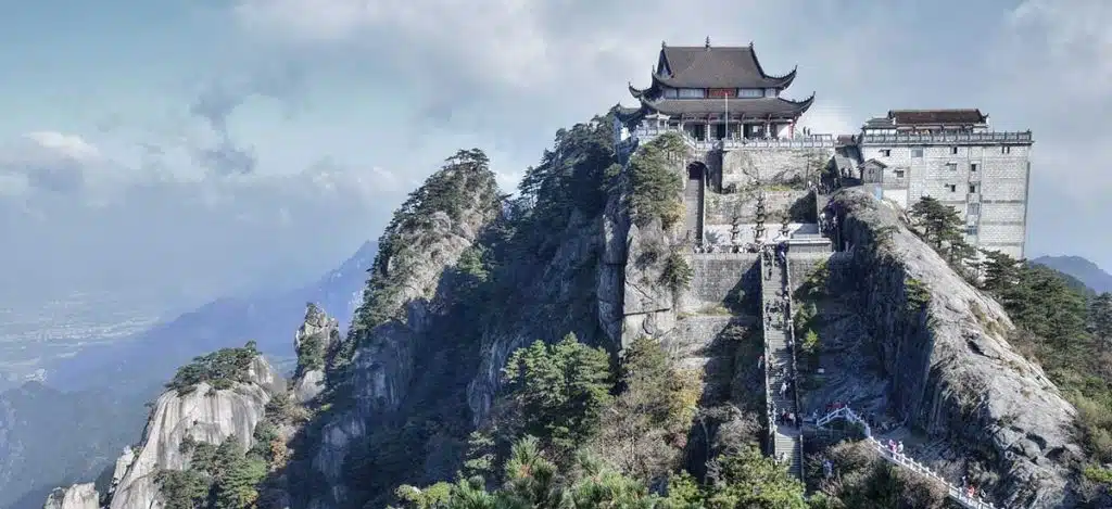 Située non loin de Huangshan (Montagnes Jaunes), Jiuhua séduit par ses superbes paysages et son climat tempéré, faisant d’elle une destination populaire durant la période estivale. Elle est considérée comme l’une des 4 montagnes sacrées de Chine, aux côtés de Wutaishan dans le Shanxi, d’Emeishan dans le Sichuan, et du Mont Putuo dans le Zhejiang. Ces dernières attirent ainsi des Bouddhistes du monde entier.C’est en 401 que le bouddhisme fut pour la première fois introduit à Jiuhuashan.Avec pas moins de 99 sommets et près d’une vingtaine de lieux d’intérêt à voir, il est conseillé de passer au moins deux jours sur place si vous comptez voir l’ensemble des points d’intérêt, avec possibilité de loger dans le village de Jiuhuajie. Ce dernier, qui ressemble de plus en plus à une petite ville, est le point de départ idéal pour l’exploration des alentours.Jiuhuashan étant une des quatre montagnes sacrées de Chine, il est normal d’y trouver un nombre conséquent de temples et autres couvents, aujourd’hui habités par près de 600 moines et nonnes. On compte pas moins de 90 temples dont 9 considérés d’importance nationale. La visite de ceux-ci occupera la majorité de votre séjour, et vous permettra de revisiter l’Histoire de la région. Mais les superbes panoramas (notamment vers la mi-journée) retiendront également votre attention.