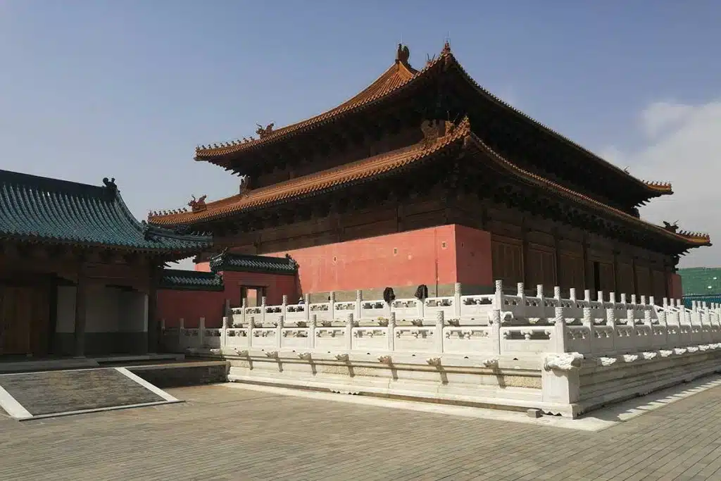 Ce gigantesque palais datant de la dynastie Ming fut incendié à la fin de cette dernière, et n’a cessé d’être en reconstruction depuis. Parmi les vestiges d’époque restant encore debout, le Mur des Neuf Dragons long de 45m et épais de 2m reste le plus marquant de par sa composition et ses décorations, et est ainsi l’un des plus beaux murs aux Esprits de Chine, destiné à protéger les habitants du palais des mauvais esprits.