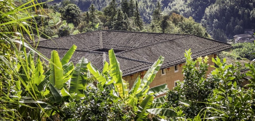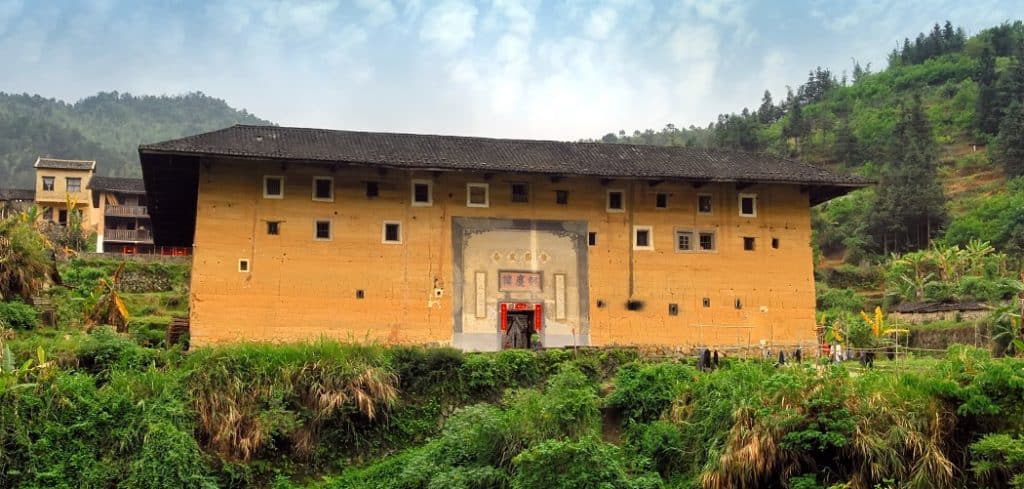 Heguilou est situé dans le village de Pushan. Ce grand bâtiment carré d’une hauteur de 21,5 mètres et de 5 étages est le plus élevé de tous les bâtiments en terre. Construit sur un terrain marécageux, il resta imprenable pendant plus de 200 ans.