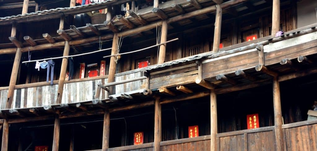 Le Tulou de Huanjilou, construit en 1693, fut utilisé comme quartier général par l’Armée Rouge. Une curiosité du bâtiment est l’effet d’écho qui fait le tour de la maison.