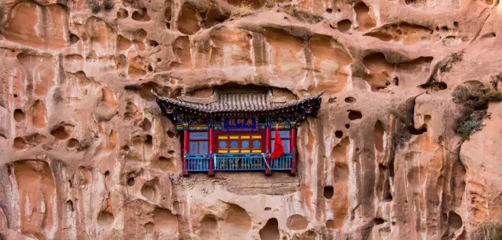 Complètement encastré dans la montagne, ce temple est bien différent des autres.