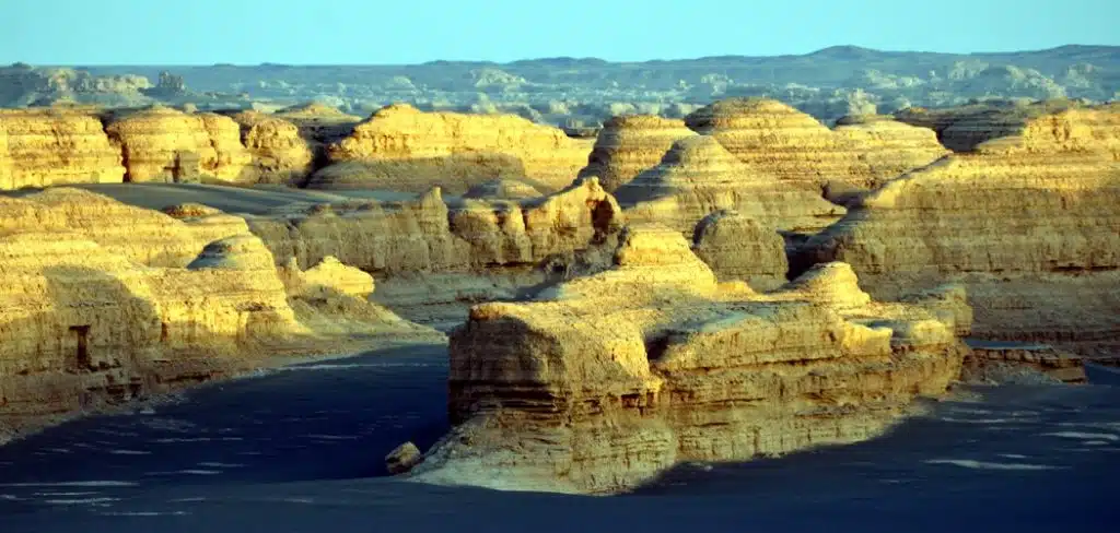 Le Parc National Géologique de Yadan, situé proche de la ville de Dunhuang dans la province du Gansu, est un immense désert de sable et de roche formé par l’érosion éolienne il y a plusieurs millions d’années.Les formes naturelles variées des rochers et autres silhouettes très singulières trouvent leur origine dans l’ancien lac désormais asséché situé ici il y a des milliers d’années. Le spectacle est étonnant et évoque pour certains un paysage lunaire.Le Parc National de Yadan se situe à un peu moins de 200km de Dunhuang. Sa visite constitue une journée d’excursion possible depuis Dunhuang, avec en chemin les visites possibles d’un ancien tronçon de la Grande Muraille de Chine datant de la dynastie des Han, de la ville de Yumen ou encore de la Porte de Jade.