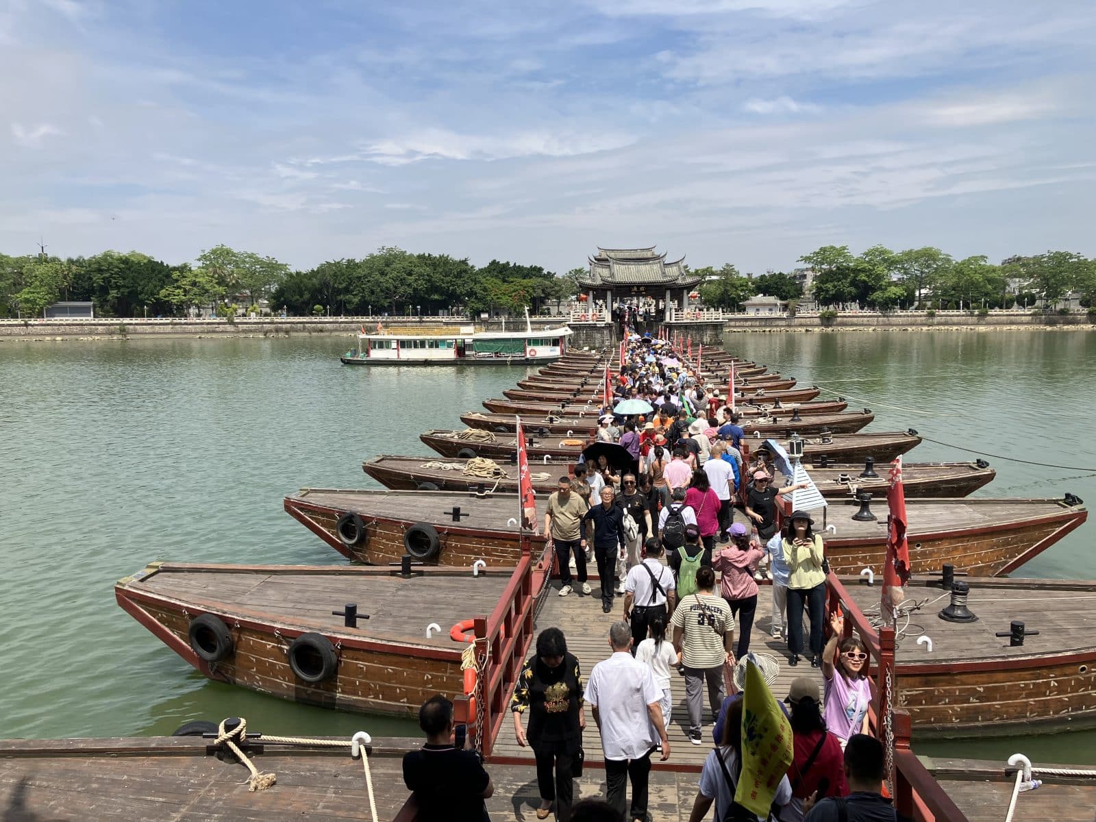 Le pont Guangji, construit à l’époque Song, est l’un des symboles de la ville. Ce pont à la structure unique, mêlant arches en pierre et sections flottantes, offre une vue magnifique sur la rivière Han, surtout au coucher du soleil. C’est un lieu idéal pour saisir l’âme de Chaozhou et comprendre son importance stratégique et économique au fil des siècles. Il est étonnant d’assister tous les jours à 10h, à la liaison de bateau afin de fermer le pont en son centre et laisser les riverains le traverser. Le soir, un spectacle de son et lumière y prend place à 20h