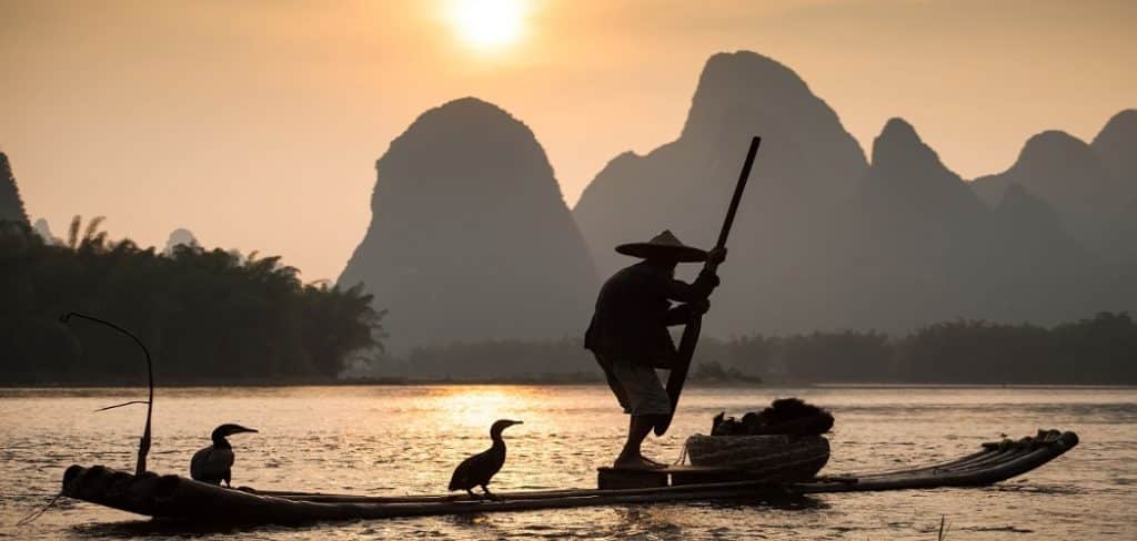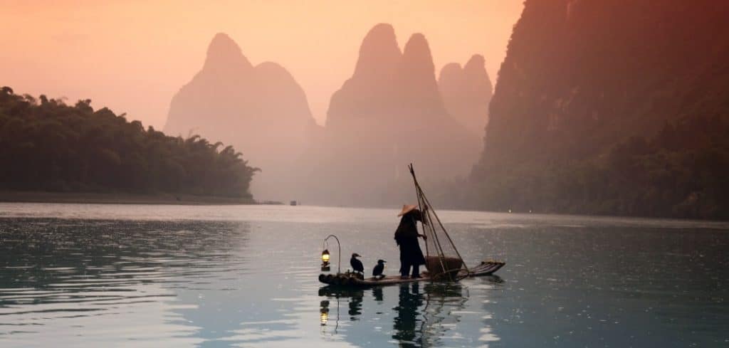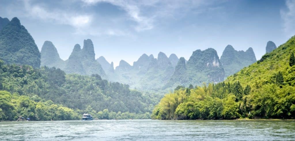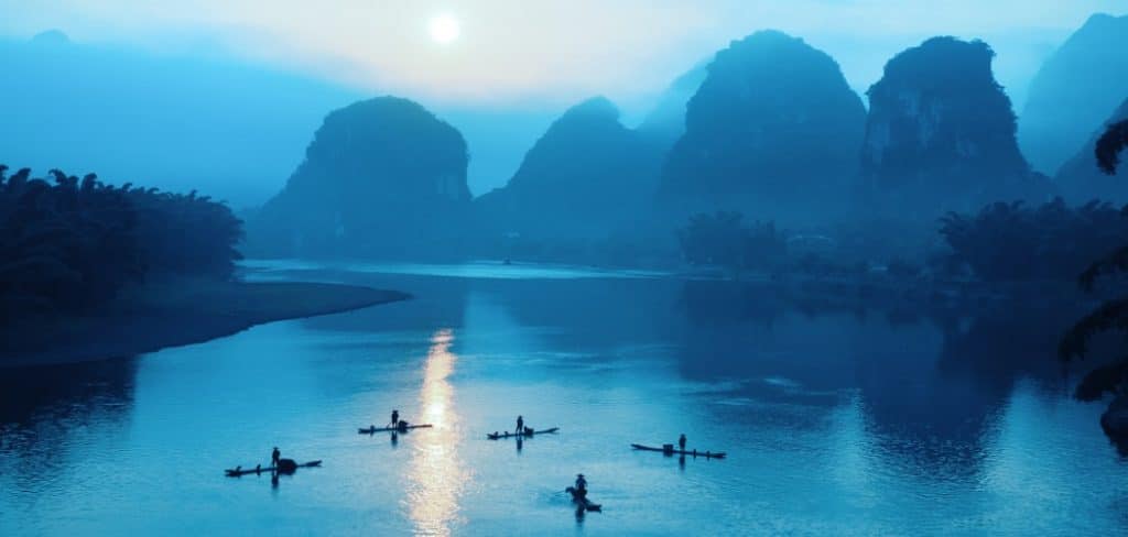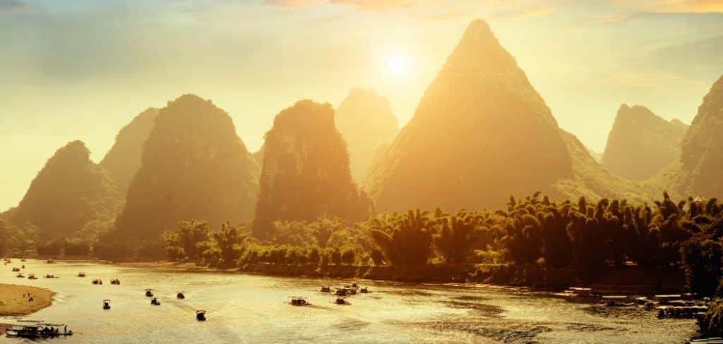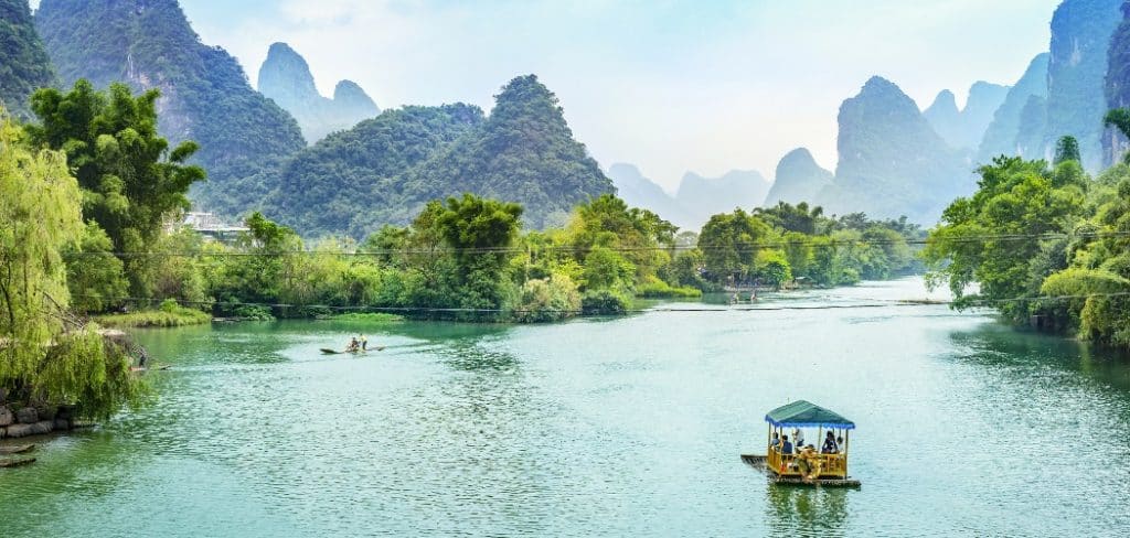 Le tronçon de la rivière Li entre Guilin et Yangshuo situé entre Yangdi et Xingping offre certainement le plus beau de tous les paysages de la région. Les croisières qui sont organisées entre Guilin et Yangshuo naviguent sur cette partie, mais pour éviter la foule de ces croisières très touristiques, vous serez plus à l’aise en effectuant une promenade en boucle à partir de Xingping sur un bateau de pêcheur ou sur un radeau en bambou. Il est recommandé de faire la balade en fin de journée lorsque les chapelets de bateaux de croisières ont disparu et que le soleil se faufile derrière les pains de sucre. Le point de départ est à environ 25 km de Yangshuo.Une croisière sur la rivière Li depuis Yangshuo jusqu’au tranquille village de Fuli est également possible. Les paysages sont moins spectaculaires, mais vous serez quasiment les seuls sur cette portion très calme.Une randonnée est également envisageable sur un chemin le long des berges de la rivière Li, de Yangdi à Xingping, l’une des plus belles portions de la rivière Li de Guilin à Yangshuo, à travers des petits villages de pêcheurs, rizières et bosquets de bambous. Cette randonnée d’environ 18 km comporte 3 traversées de la rivière Li en bateau ou en radeau de bambou. En cas de fatigue possibilité de prendre un radeau jusqu’aux abords de Xingping puis un mini bus jusqu’au centre du village. De Xingping retour à Yangshuo en voiture (25km).