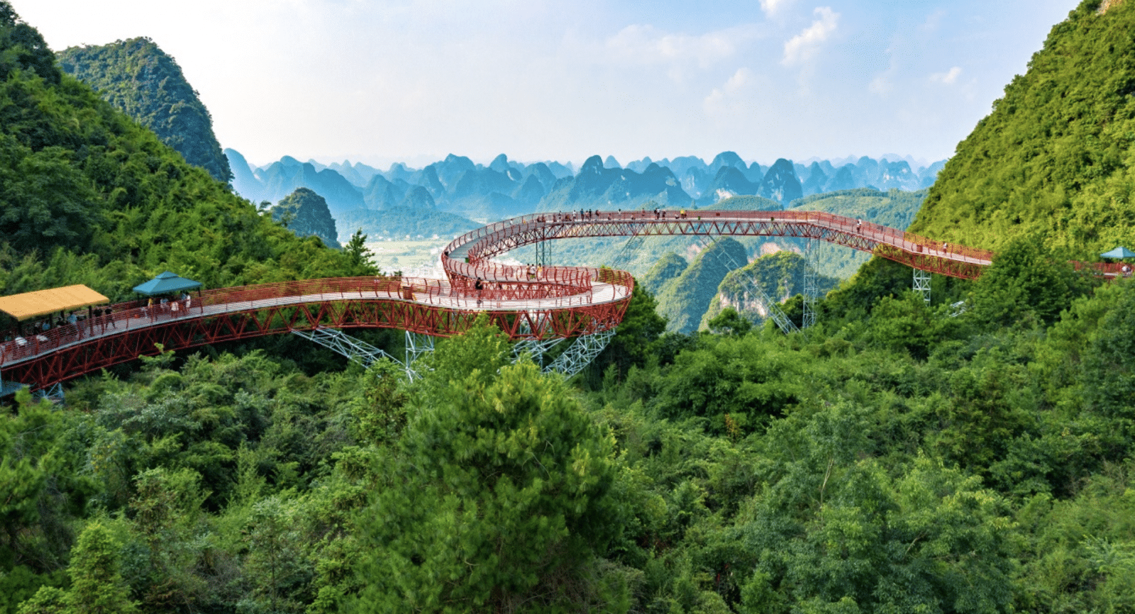 Le Pic Ruyi, situé à Yangshuo dans la région du Guangxi, est une destination récente qui attire de plus en plus de voyageurs en quête de sensations et de paysages grandioses. Accessible par un téléphérique moderne reliant plusieurs sommets karstiques, le site propose des passerelles en verre suspendues et des plateformes d’observation spectaculaires.