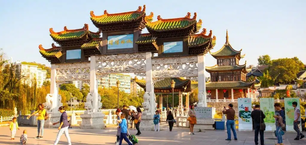 Capitale de la province du Guizhou, Guiyang présente à ses visiteurs quelques jolis paysages et d’intéressants coins de shopping, notamment pour les gastronomes, que les nombreux marchés de nuit enchanteront. Pour les amateurs de médecine chinoise et d’antiquités, un marché se tient régulièrement dans la ville, et vous pourrez goûter aux bienfaits d’une séance de réflexologie.Le parc Qiangling et son magnifique chemin vers le Temple Hongfu (17ème siècle) offre une retraite plus paisible après la visite de la vibrante capitale Guiyang.Si vous êtes matinaux, peut-être apercevrez-vous quelques locaux pratiquer le Tai chi sur la Place du Peuple de Guiyang.La ville abrite aussi de très anciens petits pavillons, comme ceux de Jiaxiu, de Wenchang ou de Cuiwei Yuan, qui valent la peine d’être visités lors de votre séjour à Guiyang.