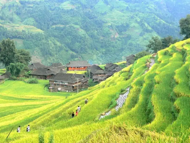 Jiabang est le nom d’un ensemble de rizières et villages situés dans la province du Guizhou. Il existe de nombreux hameaux dispersés ici et là autour des rizières en terrasses, qui sont autant d’opportunités pour de superbes balades à pied.Sur place, nous proposons une auberge toute simple, mais avec une superbe vue sur les rizières.Il existe d’autres rizières en terrasses dans la localité voisine de Jiajiu. Bref, il y a de quoi faire dans cette région encore méconnue des voyageurs !