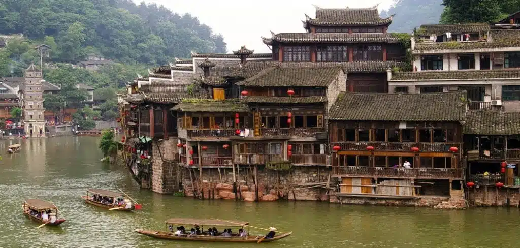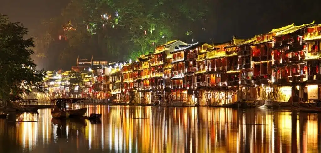 A l’Ouest de la province du Hunan, la petite ville de Fenghuang a su préserver un charme authentique ainsi que ses coutumes et traditions. Le cadre dans lequel elle se situe y joue pour beaucoup : la beauté naturelle des lieux, entre montagnes verdoyantes et cours d’eau, y joue pour beaucoup. Et si la ville en elle-même reste mystérieuse et élégante, souvent embuée d’une brume mystique tôt le matin, elle n’en reste pas simple dans sa conception.Dans la ville, les sites d’intérêt historique sont tous situés au détour des vieilles ruelles en pavés où des marchands de rue vendent des peignes en bois et d’autres accessoires typiques de la région. Les ponts et maisons reflètent les paysages aperçus dans la peinture traditionnelle chinoise. Il faut se munir d’un billet d’entrée valable pour tout visiter dans Fenghuang : le Pont de Hong, la statue du Phoenix, les remparts, les temples et les tours de guets.Les routes pour s’y rendre sont dans un mauvais état. Depuis l’aéroport de Zhangjiajie, des bus vous amèneront à destination. Fenghuang est également reliée par bus à Changsha, Jishou et Huaihua.