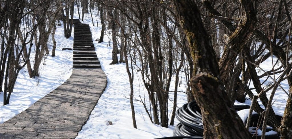 Moins impressionnante que la randonnée par les marches de l’Ouest sur le plan géologique, cette ascension de 7,5kms n’en n’est pas pour autant moins agréable.Au printemps, les azalées et les weigelas (weigela japonica) ajoutent de superbes touches de couleur aux pentes boisées. La montée est en grande partie ombragée. Assez fatigante, elle n’a toutefois rien de comparable avec les marches de l’Ouest.