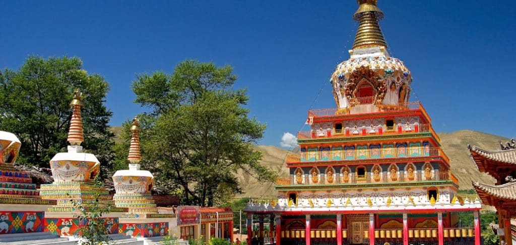 Tongren est réputée pour ses monastères, eux-mêmes appréciés pour leur production de Thangkas, qui est l’art de peindre, coudre et filer une image religieuse sur un support en général de tissu. Cette oeuvre doit ensuite être consacrée par un lama. Les Thangkas du Tongren sont souvent considérés comme parmi les plus beaux du Tibet.La ville elle-même est une grosse bourgade largement tibétaine où se trouve le vaste monastère Longwusi datant des Yuan (XIIIème et XIVème siècles).Dans les alentours se visite également le monastère Wutunsi qui présente plusieurs halls consacrés aux divinités, et un superbe stupa décoré de multiples statues colorées. C’est dans ces lieux que vous aurez l’occasion d’observer des peintres en plein exercice, dont les œuvres exposées dans le monastère sont superbes.