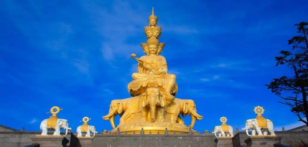 Culminant à 3099 mètres d’altitude, la Montagne Emei Shan est l’une des quatre montagnes bouddhiques sacrées de Chine. Elle est toutefois plus haute de 1 000 mètres que les trois autres. On peut y accéder depuis la ville de Leshan dans la province du Sichuan. Les 28 kilomètres qui séparent la ville de la montagne peuvent être parcourus en bus ou en voiture. Des trains en partance de Chengdu et Kunming déposent les voyageurs à proximité de la montagne. Bien que le sommet soit accessible en téléphérique ou alors en une journée de marche, il est conseillé de passer 3 jours à Emei Shan pour pouvoir explorer les lieux moins touristiques.L’ascension de cette mystérieuse montagne mène à la découverte de plusieurs temples dont le plus impressionnant est celui du village de Baoguo mais il y a au total une dizaine de temples à apprécier. Ils sont considérés comme des petits morceaux de jade parsemés le long de la montagne où près de 7 000 reliques sont conservées. Les amateurs de nature à l’état pur apprécieront également les splendides levers du soleil tôt le matin et la mer de nuages visible au niveau de l’étang du bain des éléphants.À noter que les randonnées sur la Montagne Emei Shan ne sont pas toujours faciles. Il ne s’agit en aucun cas de petits sentiers mais surtout de marches d’escaliers…Environ 66 000…! Il faudra s’armer de bâtons de marche et de patience sur certains chemins au pied du mont où les touristes sont très nombreux. On croise énormément de singes dans les environs. Ils n’ont pas l’habitude d’être agressifs mais il est tout de même déconseillé de s’en approcher.
