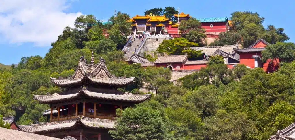 À quelques centaines de kilomètres au Sud-Ouest de Pékin, le Mont Wutaishan est un lieu de pèlerinage pour de nombreux bouddhistes venus du monde entier, un peu comme Lourdes en France. Wutaishan signifie « le mont aux cinq terrasses » en français. Et à juste titre : l’endroit est en effet situé dans le creux d’une magnifique vallée surplombée par cinq sommets. Il est classé au patrimoine mondial de l’UNESCO.