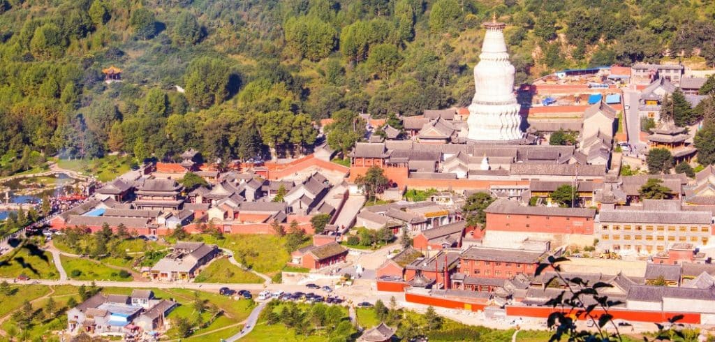 À quelques centaines de kilomètres au Sud-Ouest de Pékin, le Mont Wutaishan est un lieu de pèlerinage pour de nombreux bouddhistes venus du monde entier, un peu comme Lourdes en France. Wutaishan signifie « le mont aux cinq terrasses » en français. Et à juste titre : l’endroit est en effet situé dans le creux d’une magnifique vallée surplombée par cinq sommets. Il est classé au patrimoine mondial de l’UNESCO.