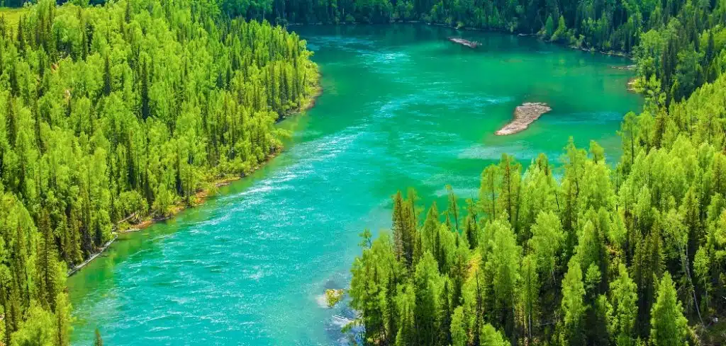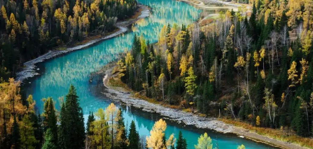 Le Lac Kanas est un lac de montagne situé sur la bordure méridionale de la chaîne de l’Altaï aux confins de la taïga sibérienne, partagée entre le Xinjiang lui-même mais aussi le Kazakhstan et la Russie. Son nom, d’origine mongole, signifie « contrée fertile et mystérieuse ». Il est parfois appelé « palette de Dieu » en raison de la multiplicité de ses couleurs et de leur beauté. Le lac est en effet d’un éclat sans pareil dans le Nord de la province : ses couleurs varient selon les saisons. Il est entouré par une immense forêt de conifères. Les locaux prétendent que le lac est la demeure d’un monstre qui serait visible une fois tous les deux ans et qui dévorerait les troupeaux de moutons des alentours…De par sa beauté, le lac attire de plus en plus de touristes dans la région et dispose de différentes baies sur ses rives, offrant de jolis points de vue.
