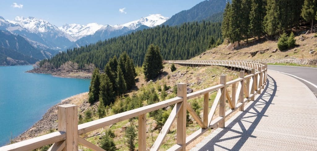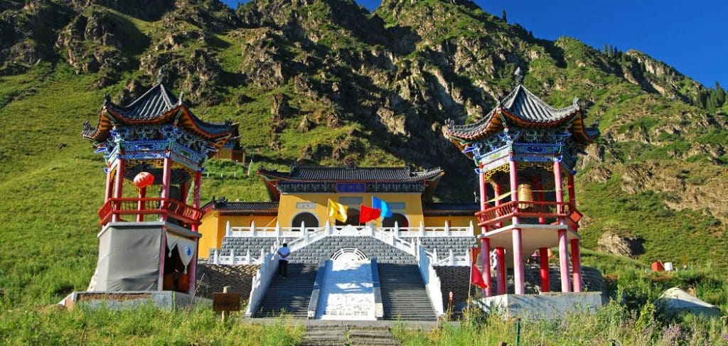 Le lac céleste se situe à 110 kilomètres à l’Est de Urumqi. Il se niche au cœur de la Montagne Tian shan, d’où le surnom de « Perle de la montagne céleste ». Niché à 1980 m d’altitude, Il mesure 5 kilomètres carrés.Durant l’été, le lac est l’endroit idéal pour se détendre. Les voyageurs voguent sur ses eaux en admirant les pâturages autour et les fleurs sauvages. Pêcher au crépuscule est un moment unique.Il est possible de se balader autour du lac, ce qui offre des panoramas magnifiques. Vous aurez peut-être la chance de rencontrer des bergers Kazakh en chemin. De nombreuses yourtes sont construites au bord du lac ainsi que le Monastère Damuo. Vous pouvez passer la nuit sur les bords du lac, soit dans une guesthouse, soit dans une yourte traditionnelle.